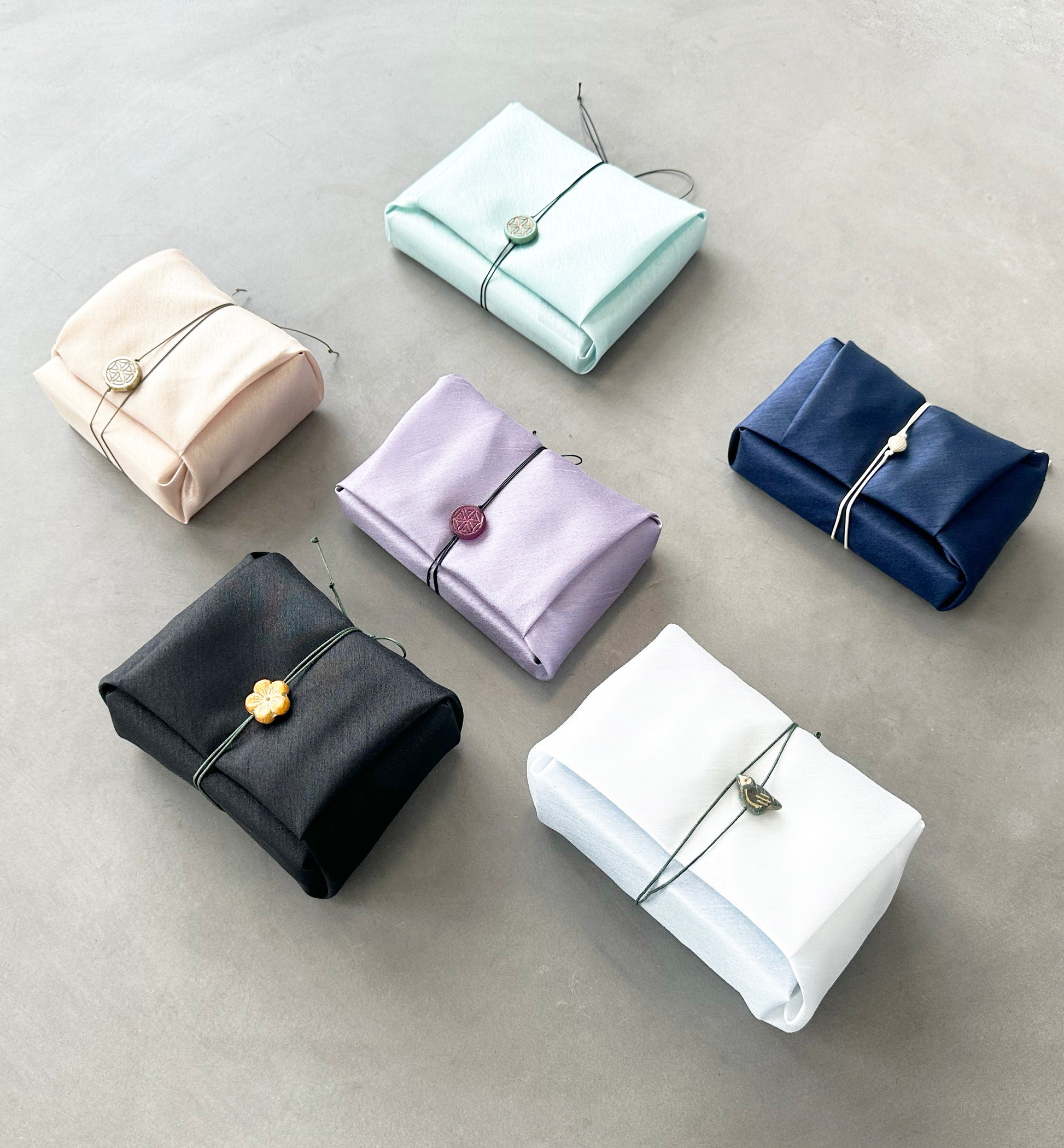 This custom small bojagi wrapping is designed for compact gifts and keepsakes. Finished with a minimal knot and subtle decorative detail, it offers a clean and refined presentation.