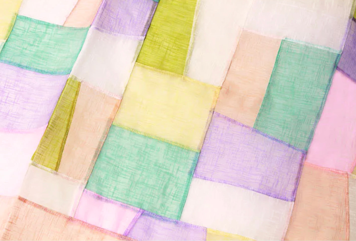 Inspired by Jogakbo, a traditional Korean patchwork art form, this piece is created by assembling small fabric remnants into a harmonious, abstract composition. Soft pastel tones and irregular geometric shapes gently diffuse sunlight, bringing warmth, calm, and subtle color into your space. Both functional and artistic, it serves as a window sun filter and a textile wall accent.