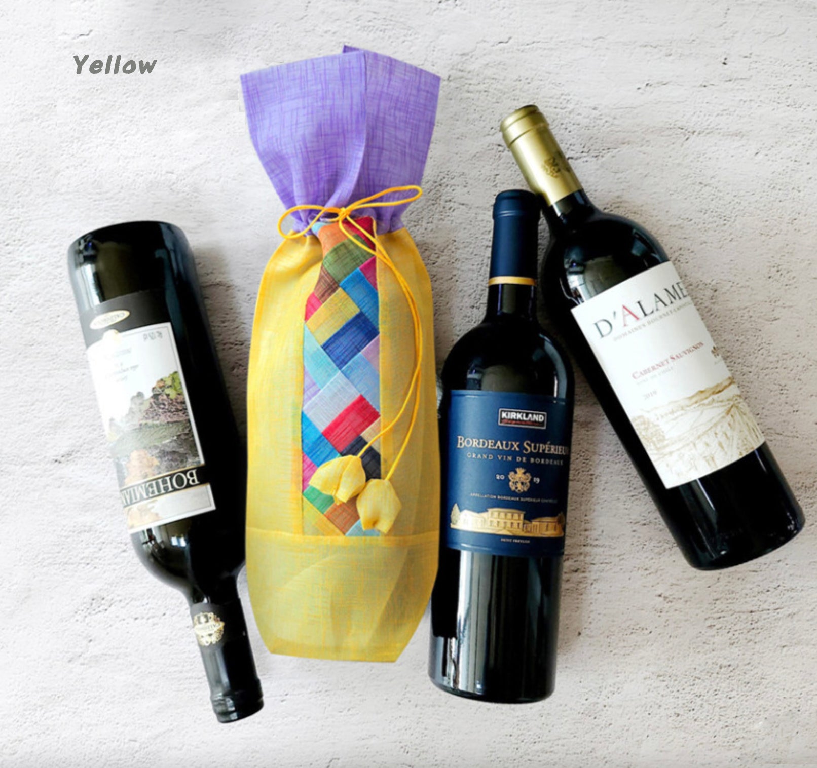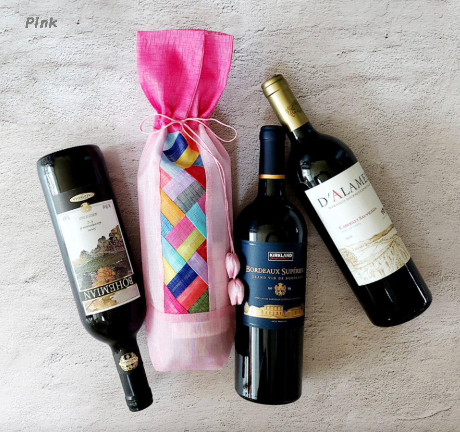 Korean Ramie Patchwork Wine Cover – Handmade Jogakbo Gift Wrap